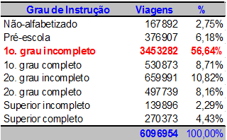 As demais profissões declaradas, por exemplo, ajudante, pedreiro mecânico, empregada doméstica, se enquadram majoritariamente no perfil de pouca formação escolar da maioria das pessoas que utilizam a caminhada como modo de transporte. Acrescenta-se a isso também ao desgaste físico e estresse decorrentes de suas atividades diárias e às condições de tratamento urbano e do tráfego dos locais por onde estas pessoas caminham.
