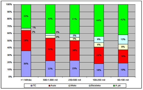 - Perfil de Mobilidade das cidades brasileiras de acordo com seu tamanho por número de habitantes onde a as viagens a pé nas cidades com mais de 1 milhão de habitantes respondem por aproximadamente 33% de todas as viagens diárias – ANTP – 2012