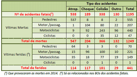 - CET – Companhia de Engenharia de Tráfego – “Acidentes de Trânsito Fatais – Relatório anual 2014”