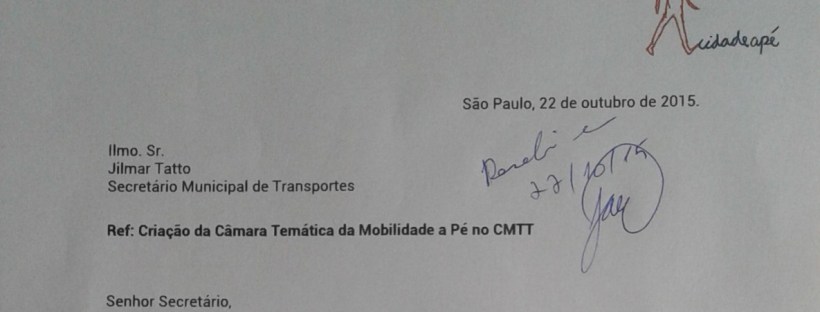 Veja o ofício solicitando a criação de uma Câmara de Mobilidade a Pé aqui.