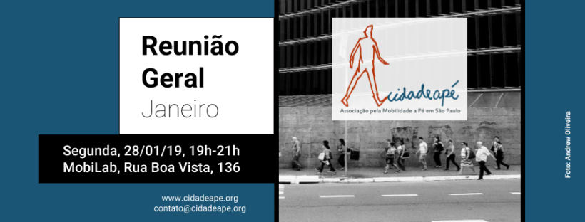 Todas e todos estão convidados a participar da 45ª Reunião Geral da Cidadeapé, segunda-feira, 28/01/19, às 19h00, no Mobilab (Rua Boa Vista, 136, Mezanino), próximo ao Metrô São Bento.