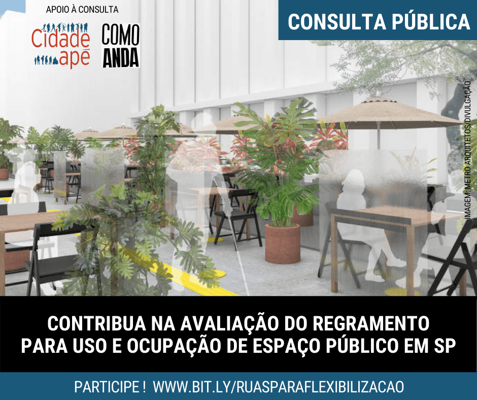 Nesse sentido, a Prefeitura abriu de 23 de setembro a 16 de outubro uma consulta pública a fim de colher contribuições da sociedade civil para eventualmente elaborar a norma que poderá rever o regramento necessário para uso e ocupação de espaço público.