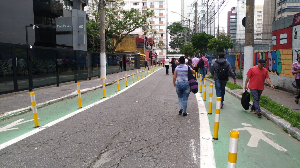 Rua em São Paulo adaptada para o fluxo de pedestres. Imagem: Cidade Ativa