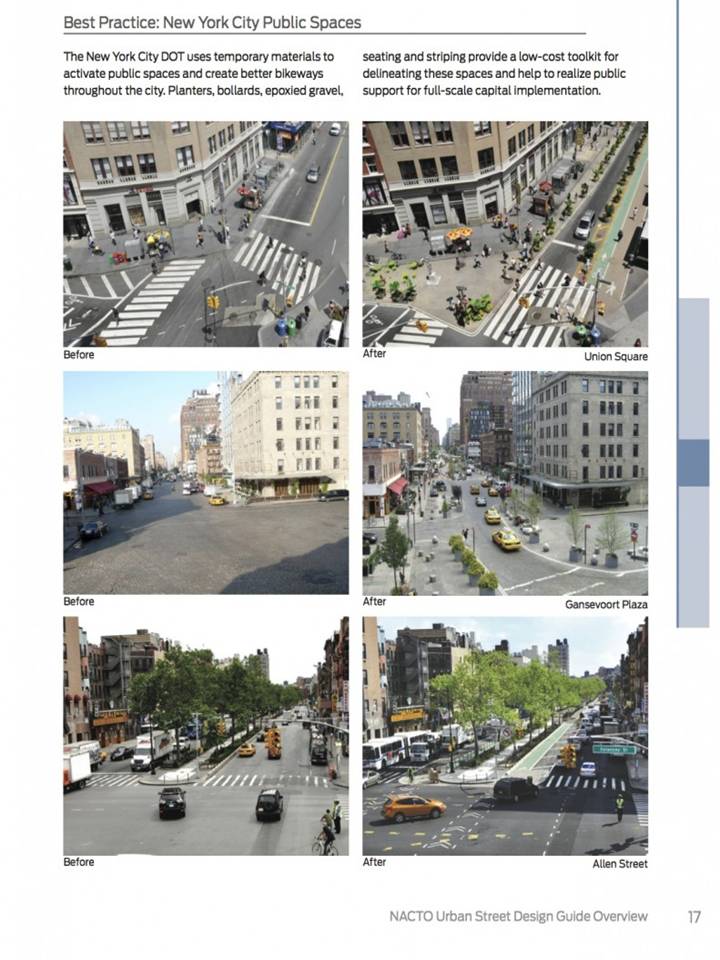 Antes e depois. Ruas que melhoram a experiência do pedestre nos Estados Unidos.