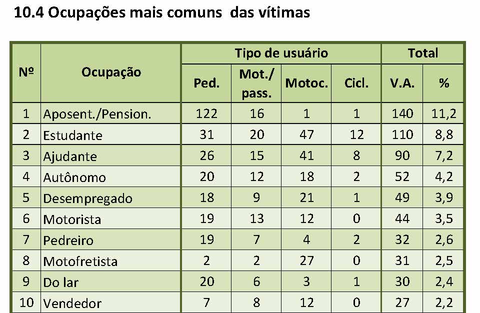 Há várias outras conclusões que podem ser tiradas deste relatório e que deveriam subsidiar políticas públicas voltadas para a segurança sobretudo do pedestre, o ator mais vulnerável da mobilidade.