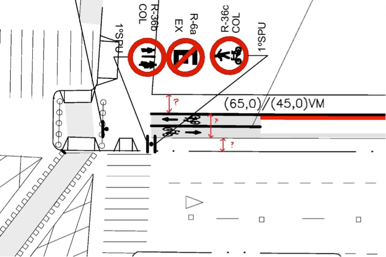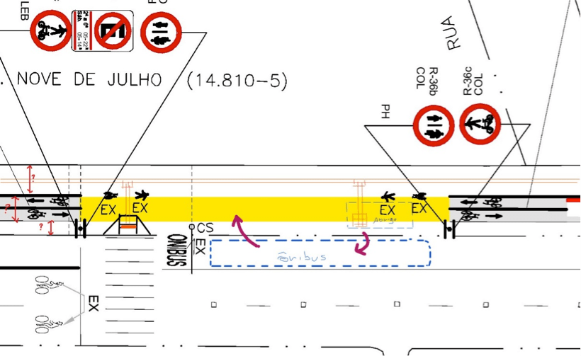 A partir da imagem do projeto de sinalização exposto pela CET, verifica-se o seguinte: