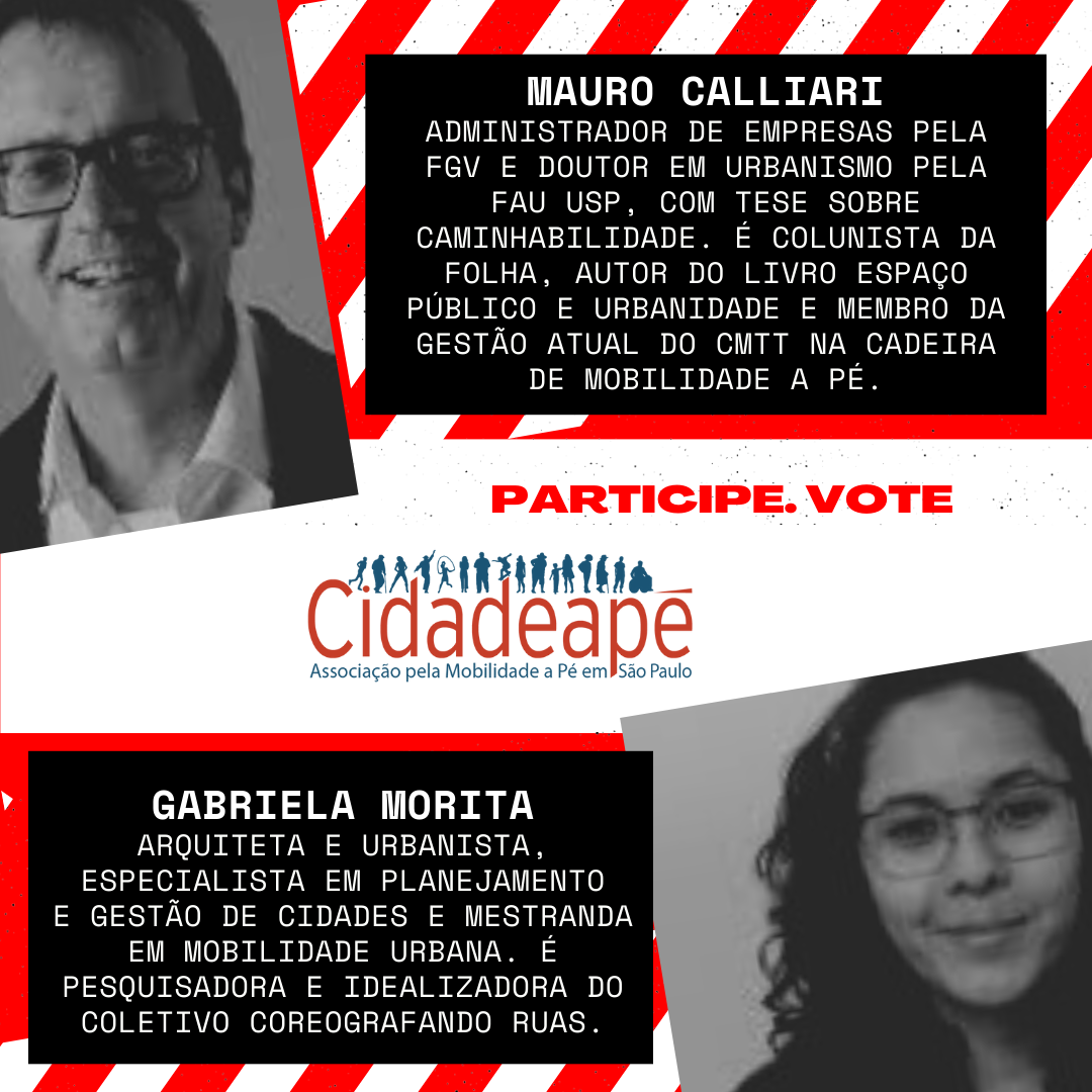 Mauro Calliari: Foi muito bom ter feito parte da última gestão do conselho e foi por isso que decidi concorrer a mais um mandato. O acompanhamento de perto das pautas da mobilidade permite enxergar os gargalos do poder público e os humores da sociedade em relação ao tema da mobilidade a pé. Sinto que esse trabalho de formiguinha pode dar frutos, se conseguirmos conciliar o respeito institucional à combatividade do dia a dia. É preciso mudar o jeito de olhar para o andar a pé. Não é ‘dar um passeio’. É se deslocar pela cidade, até a escola, o posto de saúde e, claro, até os pontos de transporte público. Vamos ficar de olho nos problemas e nos projetos que podem ajudar a melhorar a mobilidade a pé: o calçadão do centro, as áreas calmas, as rotas escolares, os acessos aos terminais e, claro, as calçadas! Estou feliz em ter sido reeleito, desta vez junto com a Gabriela Morita.