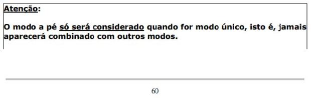 A Figura 1 foi extraída do manual (Companhia do Metropolitano de São Paulo, 2012b) que o entrevistador deve seguir durante a pesquisa, e mostra a clara instrução em relação ao modo a pé.