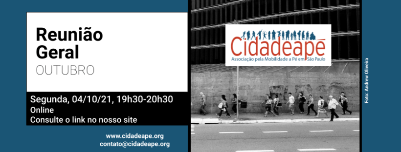 | Dia: Segunda-feira, 04/10/2021 Hora: Das 19h30 às 20h30 Local: ONLINE Link: https://bit.ly/cidadeape76 Zoom ID: 998 9215 6707Senha: 215117 |