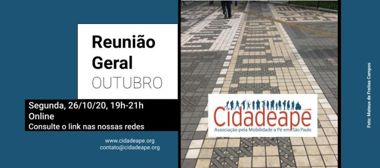 Todas e todos estão convidados a participar da 100ª Reunião Geral da Cidadeapé. Nossa reunião acontecerá em formato híbrido – online e presencial. Confira os endereços digital e físico abaixo. Venha contribuir para uma cidade mais caminhável! Participe. PAUTA DA 100ª REUNIÃO GERAL Lembramos que a reunião é aberta a quem quiser conhecer quem faz … Continue lendo OUTUBRO 2023