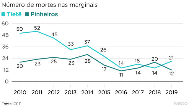 Apesar da aprovação popular, os resultados práticos iam na contramão da avaliação popular. No primeiro ano de Doria à frente da administração, as marginais somaram 32 mortes, uma alta de 28% em relação ao ano anterior.